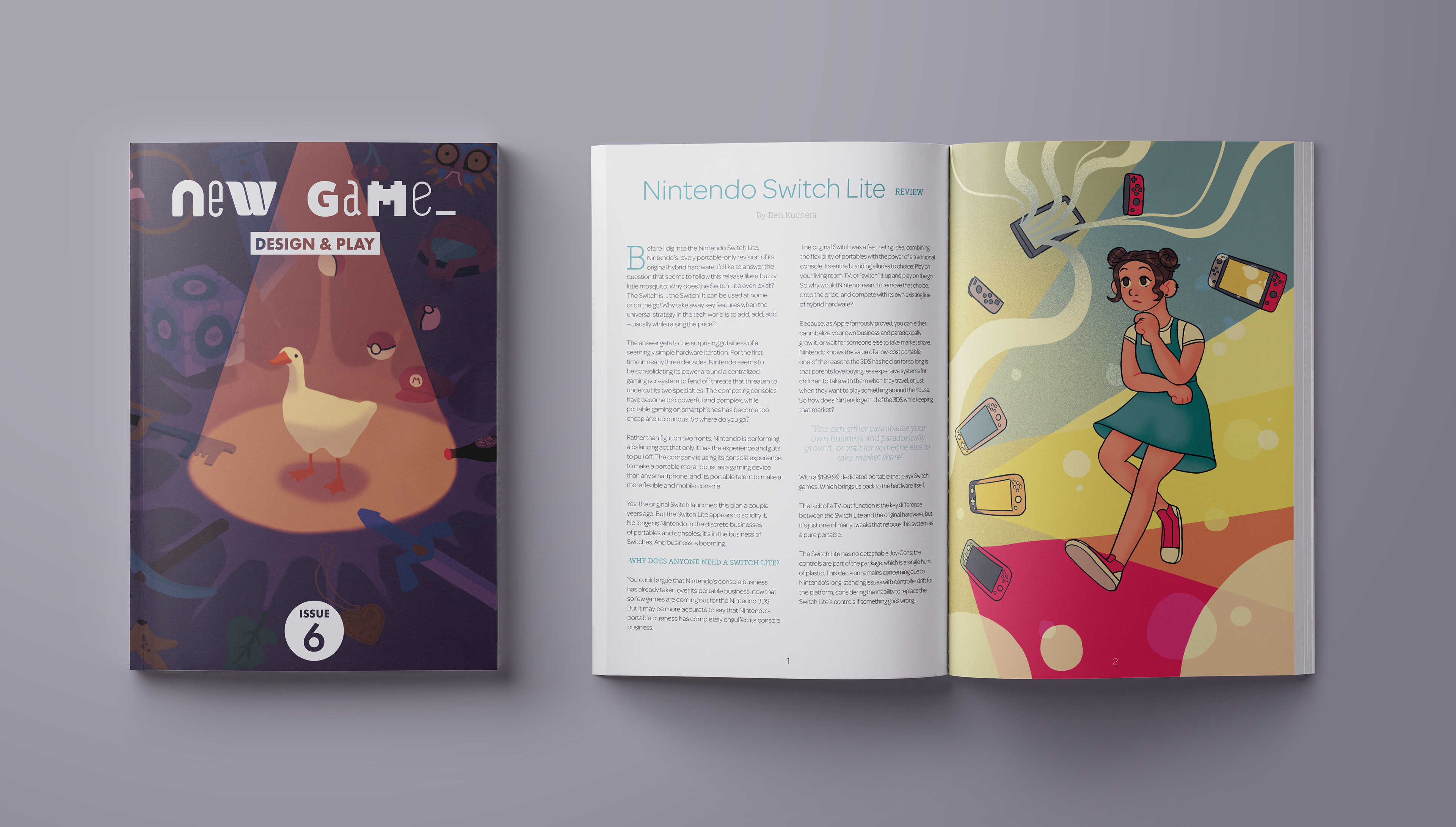 New Game is a magazine concept based around design and gaming - The text I've used to hang my illustrations and layout ideas on is an article from Polygon, written by Ben Kuchera. You can read the original